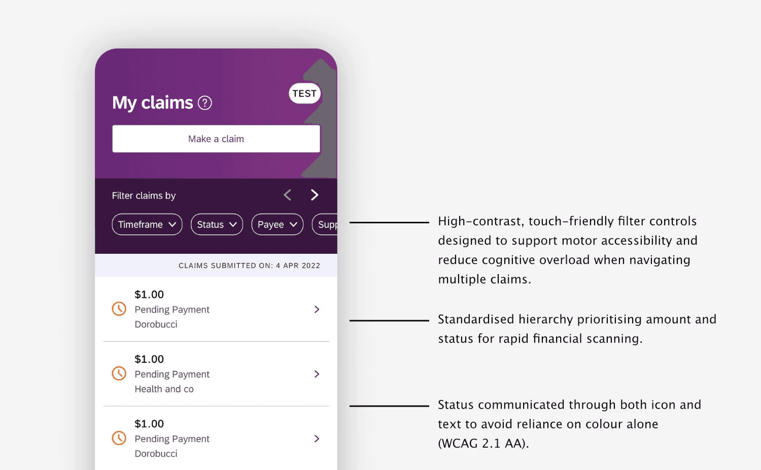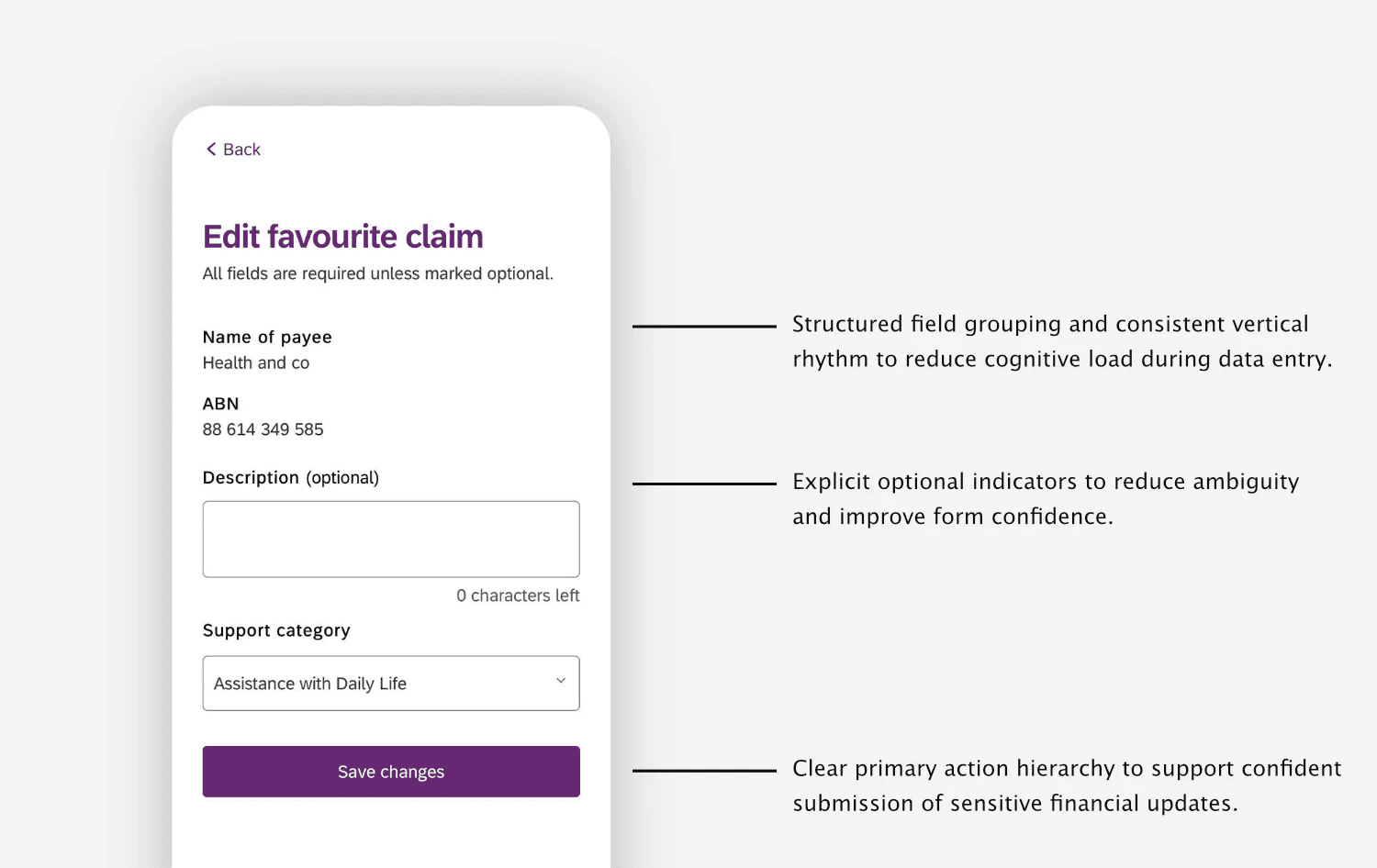 The improvements strengthened clarity and accessibility within key areas of the claims experience while remaining fully aligned with the existing design system and governance constraints of the NDIS platform.